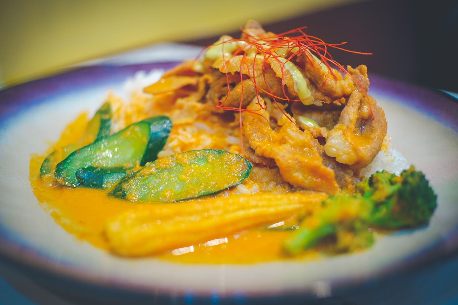 筆者食用泰式咖哩時喜歡搭配油脂較豐厚的豬肉或羊肉,跟其辣味搭配比較舒服。